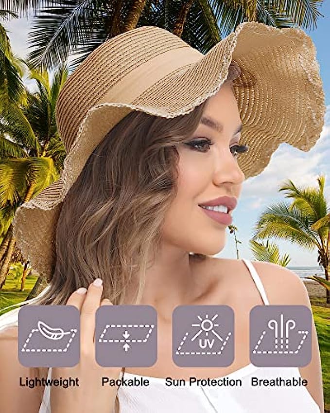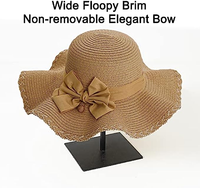 Straw Imported Elastic closure Hand Wash Only [ONE SIZE FITS MOST] Style 1 : brim 3.15’’ (8cm), height 4.33’’ (11cm), circumference 21.26-22.83’’ (54-58cm). Style 2: brim 4.72’’ (12cm), circumference 22.05-23.62’’ (56-60cm). One size fits most women, girls and ladies. There is a elastic string that makes it size up better [DURABLE STRAW FABRIC] Double woven straw hat is durable and not easily lose shape. It can block harmful UV rays in order to prevent skin sunburn. Lightweight and breathable, keep your head cool all day [WIDE BRIM & BOW TIE] Floppy brim makes you more charming and adorable. Soft linen bow tie makes the beach hat feature personal and fashion. Bringing you shade and beauty in the hot and boring summer